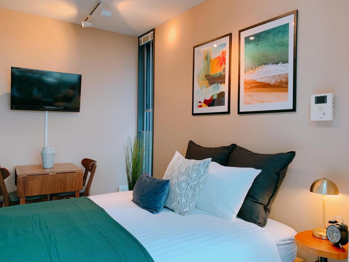One-Bedroom Apartment. This apartment comes with 1 living room, 1 separate bedroom and 1 bathroom with a walk-in shower and free toiletries. Guests can make meals in the kitchen that features a stovetop, a refrigerator, kitchenware and a microwave. Boasting a balcony, this apartment also features air conditioning, a washing machine and a flat-screen TV with streaming services. The unit has 1 bed. ;