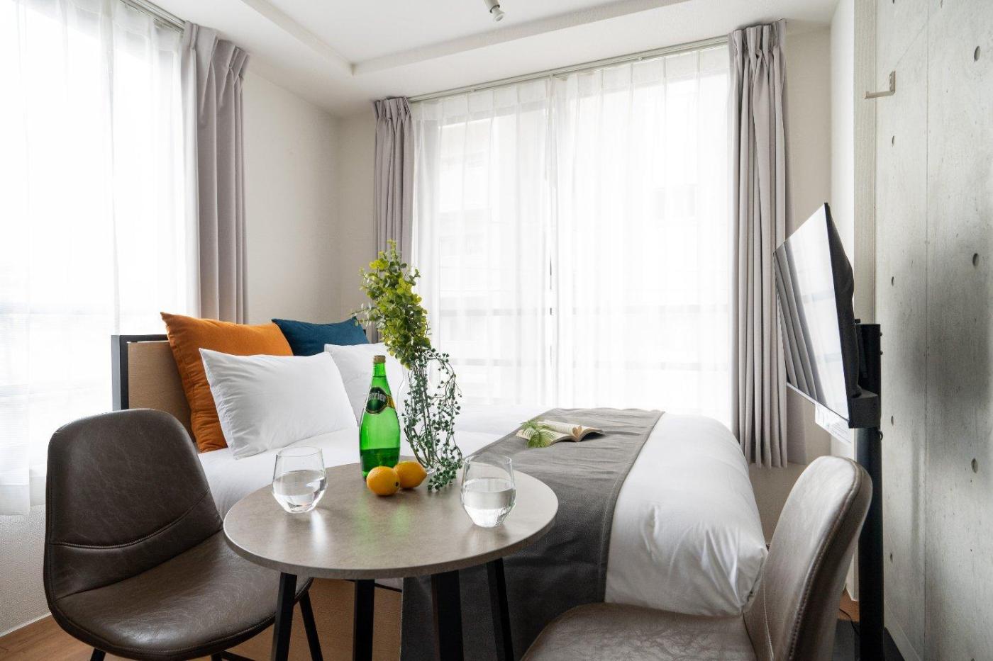 One-Bedroom Apartment. This air-conditioned apartment is comprised of 1 living room, 1 separate bedroom and 1 bathroom with a bath. Meals can be prepared in the kitchen, which comes with a stovetop, a refrigerator, kitchenware and a microwave. The apartment offers a washing machine, a wardrobe, an electric kettle along with heating. The unit offers 3 beds. ;