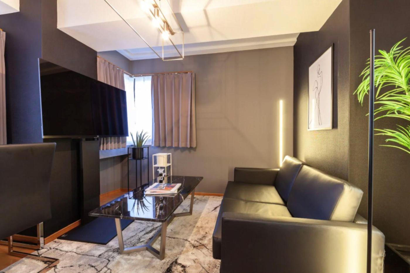One-Bedroom Apartment. This apartment comes with 1 living room, 1 separate bedroom and 1 bathroom with a shower and free toiletries. The well-equipped kitchen has a stovetop, a refrigerator, kitchenware and a microwave. This apartment is air-conditioned and features a flat-screen TV, a washing machine, a sofa and heating. The unit has 1 bed and 1 futon.