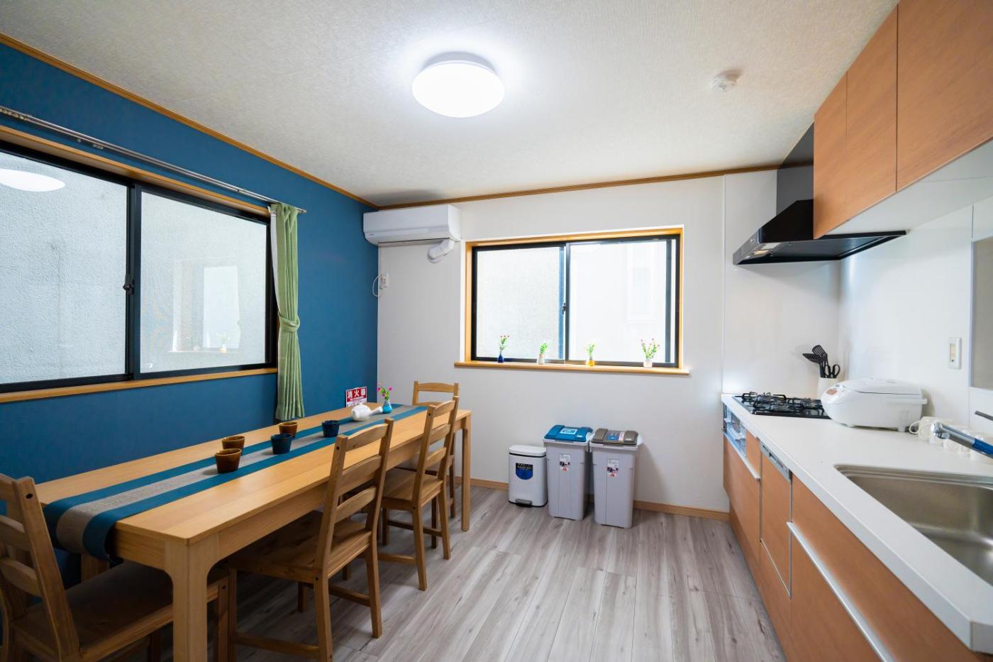 Villa. The air-conditioned villa has 4 bedrooms and 1 bathroom with a bath and a bidet. In the fully equipped kitchen, guests will find a refrigerator, a dishwasher, kitchenware and a microwave. The villa features tatami floors and features a washing machine, a dining area as well as a balcony with a quiet street view. The unit has 7 beds.