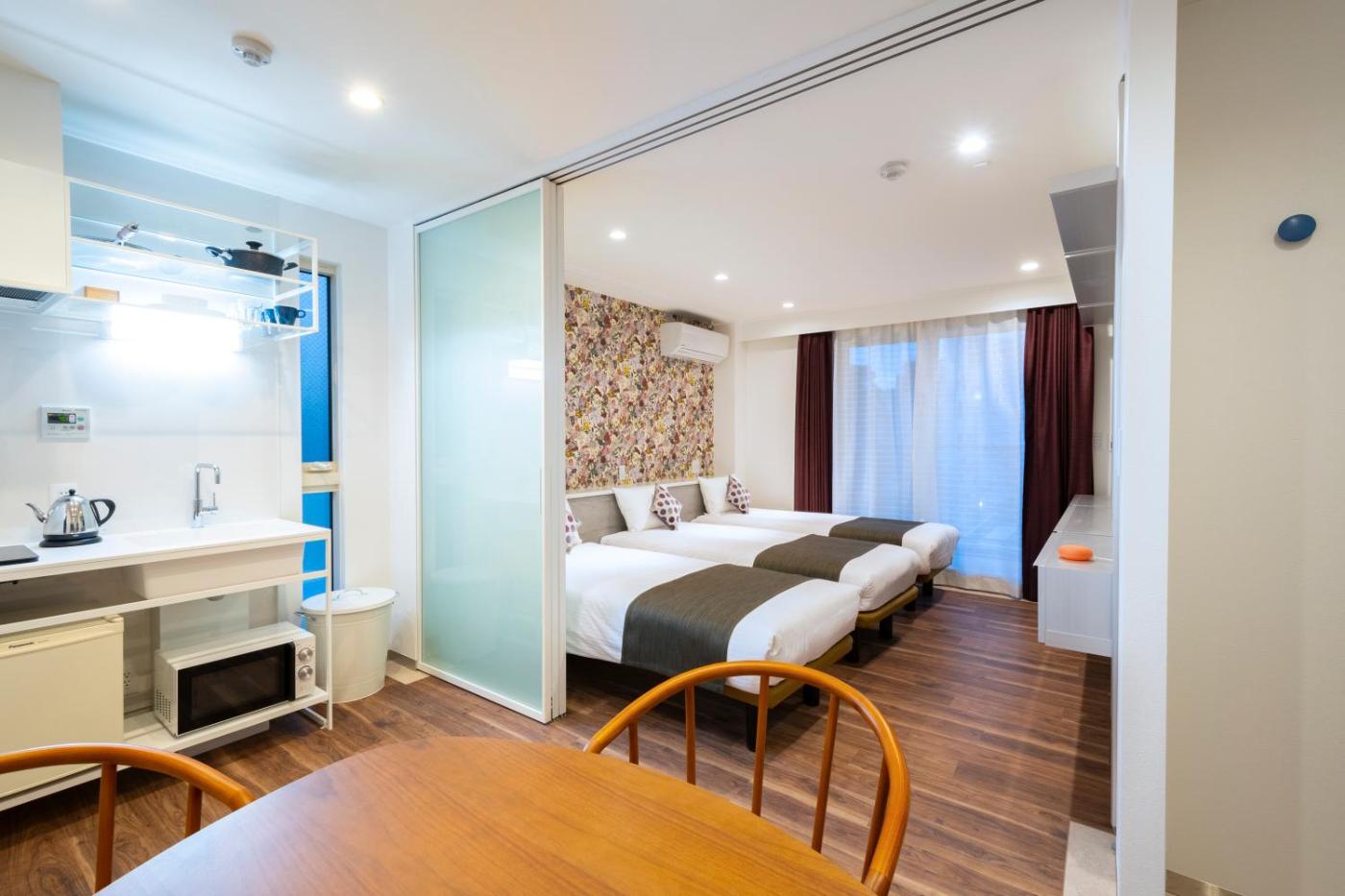 Deluxe Triple Room. The well-equipped kitchen has a stovetop, a refrigerator, kitchenware and a microwave. The spacious triple room features air conditioning, a washing machine, as well as a private bathroom boasting a bath and a shower. The unit has 3 beds. ;