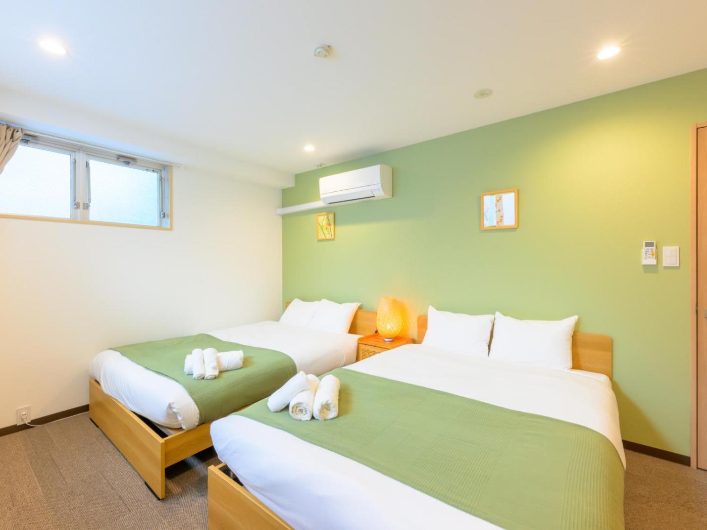Two-Bedroom Apartment. Featuring a private entrance, this spacious apartment also comprises 2 separate bedrooms and 1 bathroom with a bath and a shower. Guests can make meals in the kitchen that comes with a stovetop, a refrigerator, kitchenware and a microwave. This apartment features air conditioning, a washing machine, a flat-screen TV and a balcony. The unit offers 4 beds. ;