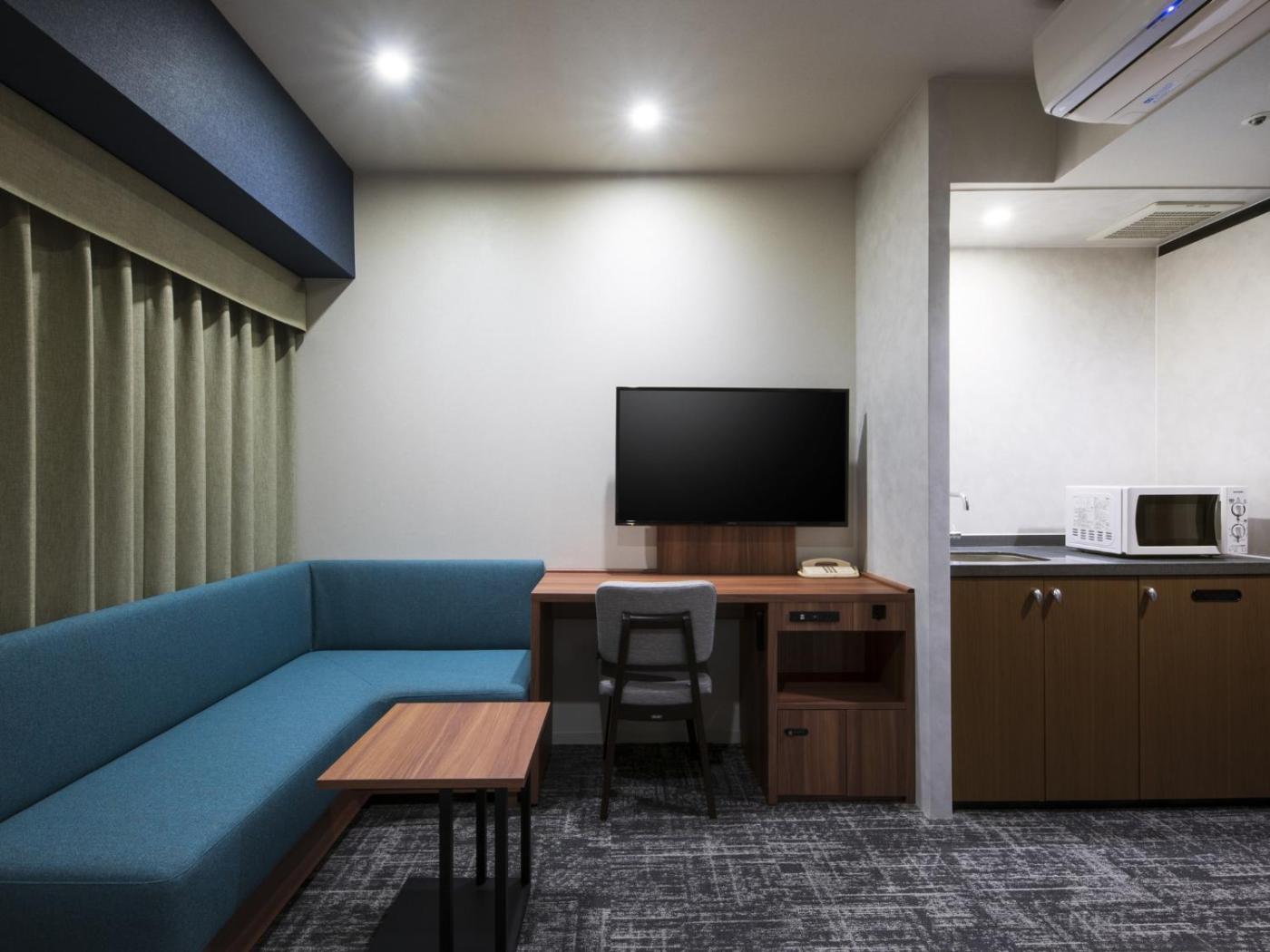 Renovated Twin Room - Non-Smoking (Check-in 6PM-, Check-out 9AM). The twin room includes a private bathroom, well-fitted with a bath, a shower, a bidet, a hairdryer and slippers. The twin rooms kitchenette, which features a refrigerator and a microwave, is available for cooking and storing food. The twin room offers air conditioning, a wardrobe, a safe deposit box, an electric kettle and a flat-screen TV. The unit offers 2 beds. ;