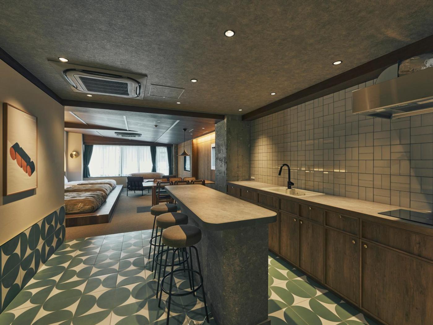 Superior Suite. The spacious suite has 1 bedroom and 1 bathroom with a shower and free toiletries. In the well-equipped kitchen, guests will find a stovetop, a refrigerator, kitchenware and a microwave. The air-conditioned suite features a flat-screen TV, a washing machine, a tea and coffee maker, a dining area as well as a quiet street view. The unit has 3 beds.