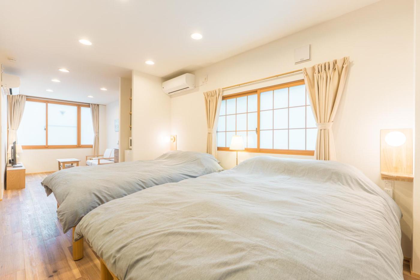 Deluxe Studio. Providing free toiletries, this studio includes a private bathroom with a shower, a bidet and a hairdryer. Guests can make meals in the kitchen that is equipped with a stovetop, a refrigerator, kitchenware and a microwave. The air-conditioned studio provides a flat-screen TV with streaming services, a washing machine, soundproof walls, a tea and coffee maker as well as a quiet street view. The unit offers 2 beds.