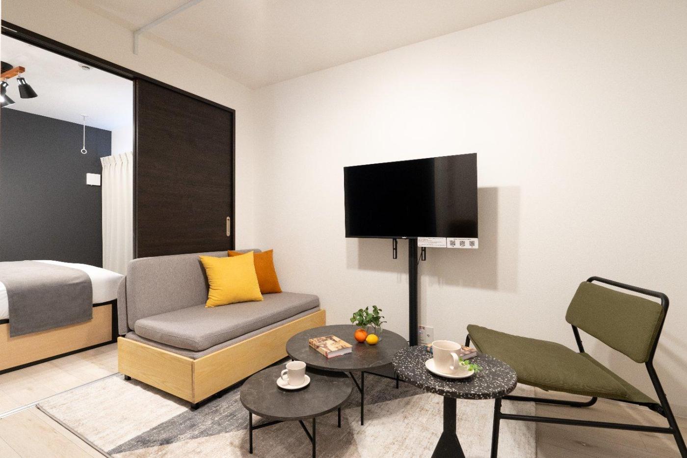 One-Bedroom Apartment. This air-conditioned apartment features 1 living room, 1 separate bedroom and 1 bathroom with a bath. Guests can make meals in the kitchen that features a stovetop, a refrigerator, kitchenware and a microwave. The apartment features a washing machine, a wardrobe, an electric kettle along with a patio. The unit has 2 beds.