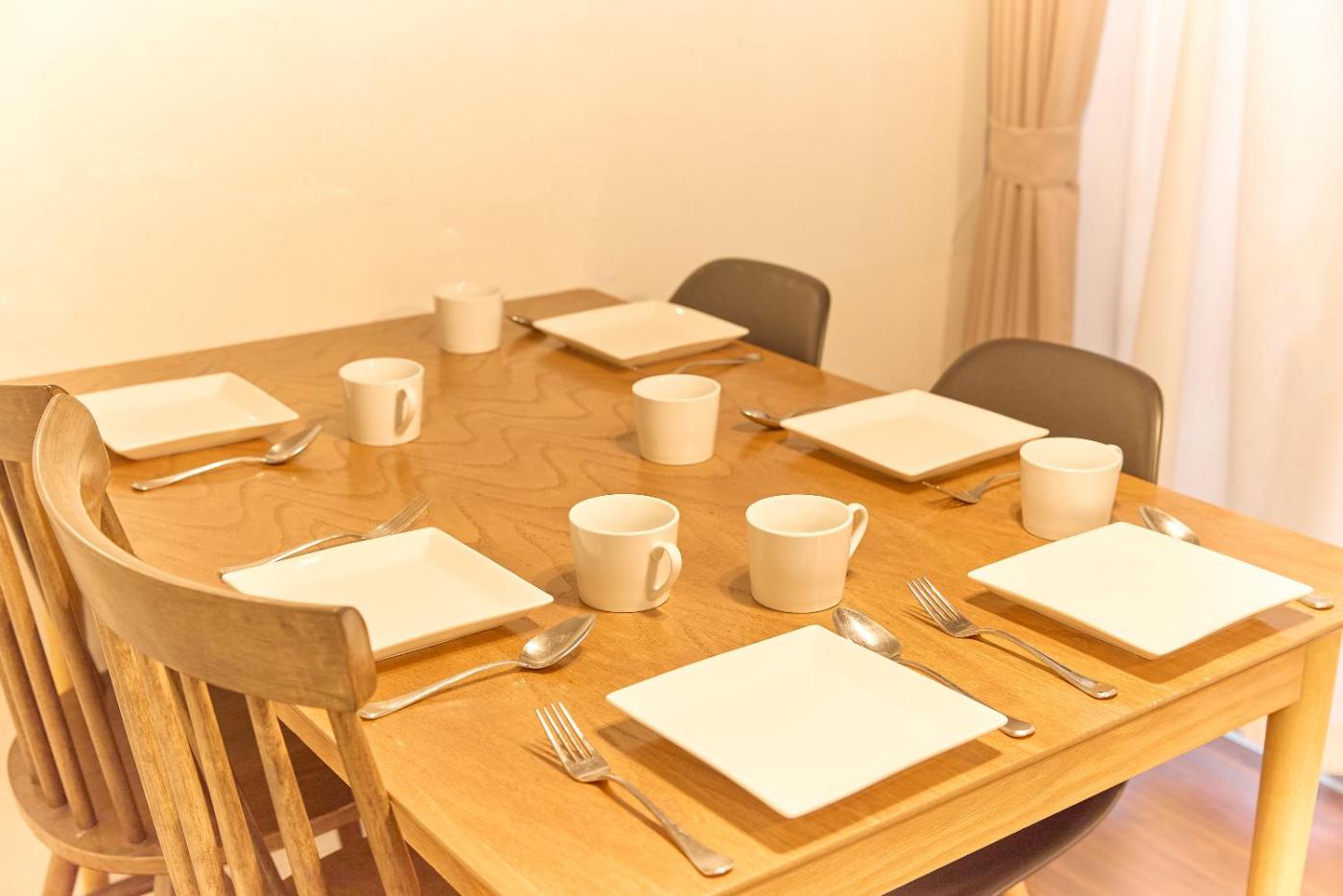 One-Bedroom Apartment. This air-conditioned apartment includes 1 living room, 1 separate bedroom and 1 bathroom with a bath. In the kitchen, guests will find a stovetop, a refrigerator, kitchenware and a microwave. The apartment offers a TV with cable channels, a washing machine, tatami, a coffee machine as well as a quiet street view. The unit has 1 bed and 4 futons.