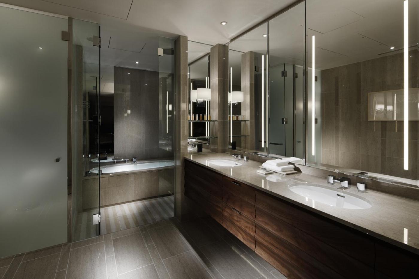 Chiyoda Suite. This spacious suite comes with a complimentary access to the Club Lounge. Offering a view of the Imperial Garden, it features a living room and a bedroom fitted with luxurious furnishings inspired by Japanese aesthetics. The bathroom comes with a stone bathtub and a separate shower. The suite boasts a large balcony with small gardens. ;