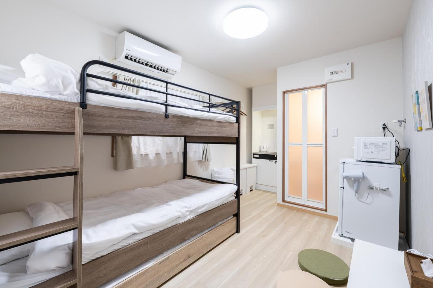 Triple Room with Bath. Providing free toiletries, this triple room includes a private bathroom with a bath, a shower and a hairdryer. Guests can make meals in the kitchenette that is equipped with a refrigerator, kitchenware, a microwave and an electric kettle. The triple room provides air conditioning. The unit offers 3 beds. ;