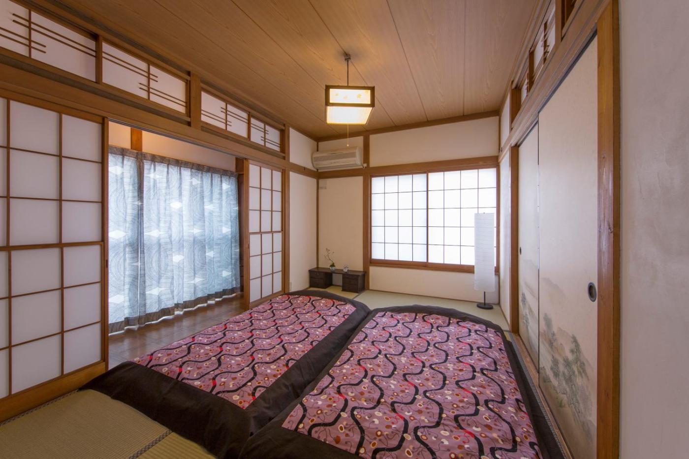 Japanese-Style Superior Twin Room. This twin room is air-conditioned and has a shared bathroom, tatami floors and a wardrobe. The unit has 2 futons. ;