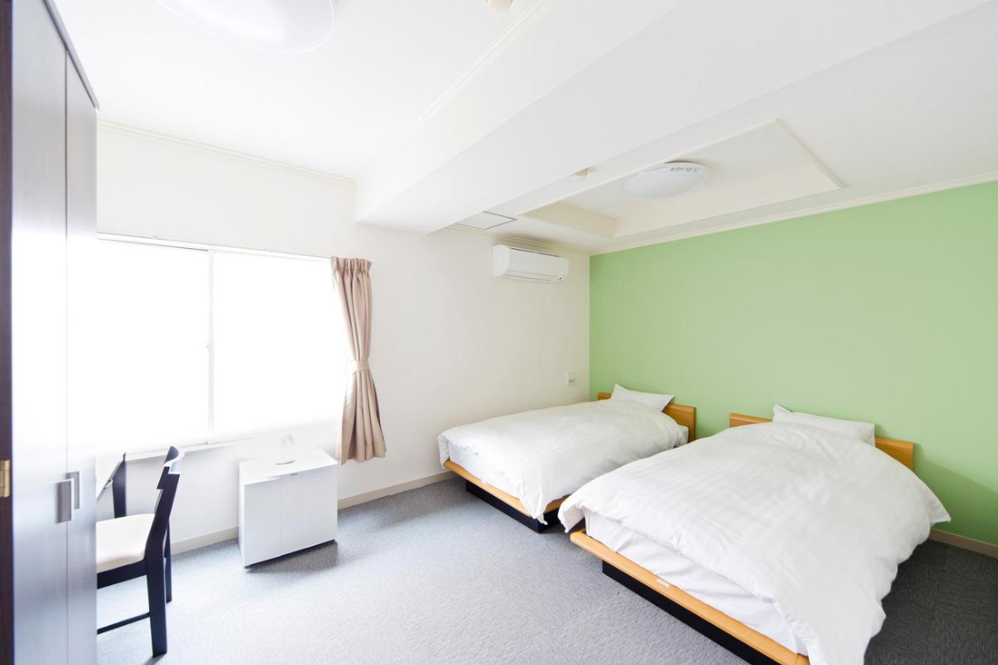Standard Twin Room. Air-conditioned room featuring a lively interior in fresh pale green and white, a flat-screen TV and a small fridge. The attached bathroom offers free toiletries. ;