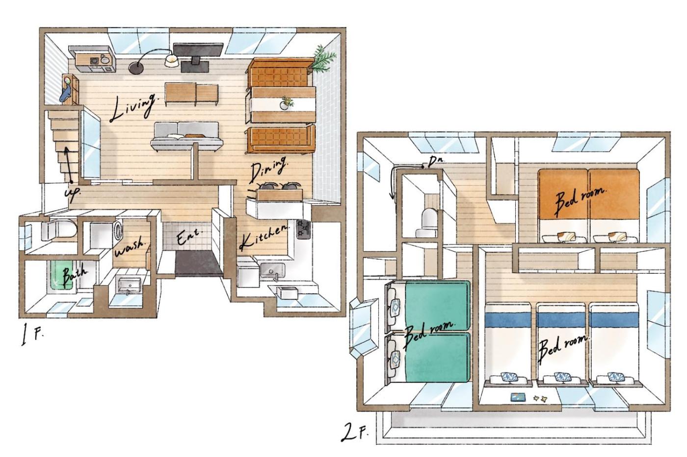 Three-Bedroom House. Boasting a private entrance, this air-conditioned holiday home features 1 living room, 3 separate bedrooms and 1 bathroom with a bath and a shower. In the fully equipped kitchen, guests will find a stovetop, a refrigerator, kitchenware and a microwave. This holiday home has a washing machine, a dining area, a flat-screen TV and a balcony. The unit has 7 beds.
