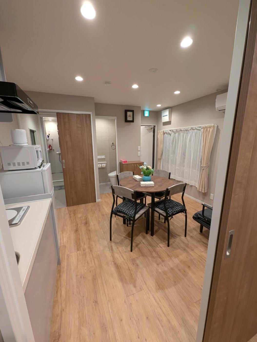 One-Bedroom Apartment. This apartment features 1 living room, 1 separate bedroom and 1 bathroom with a shower and free toiletries. Guests can make meals in the kitchen that has a stovetop, a refrigerator, kitchenware and a microwave. The apartment features air conditioning, a washing machine, a dining area, an electric kettle and a flat-screen TV. The unit has 3 beds.