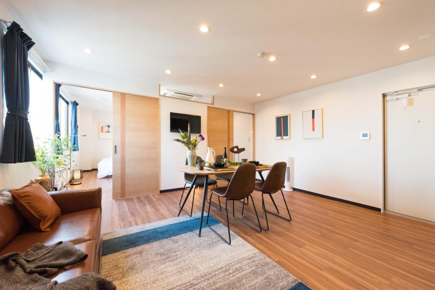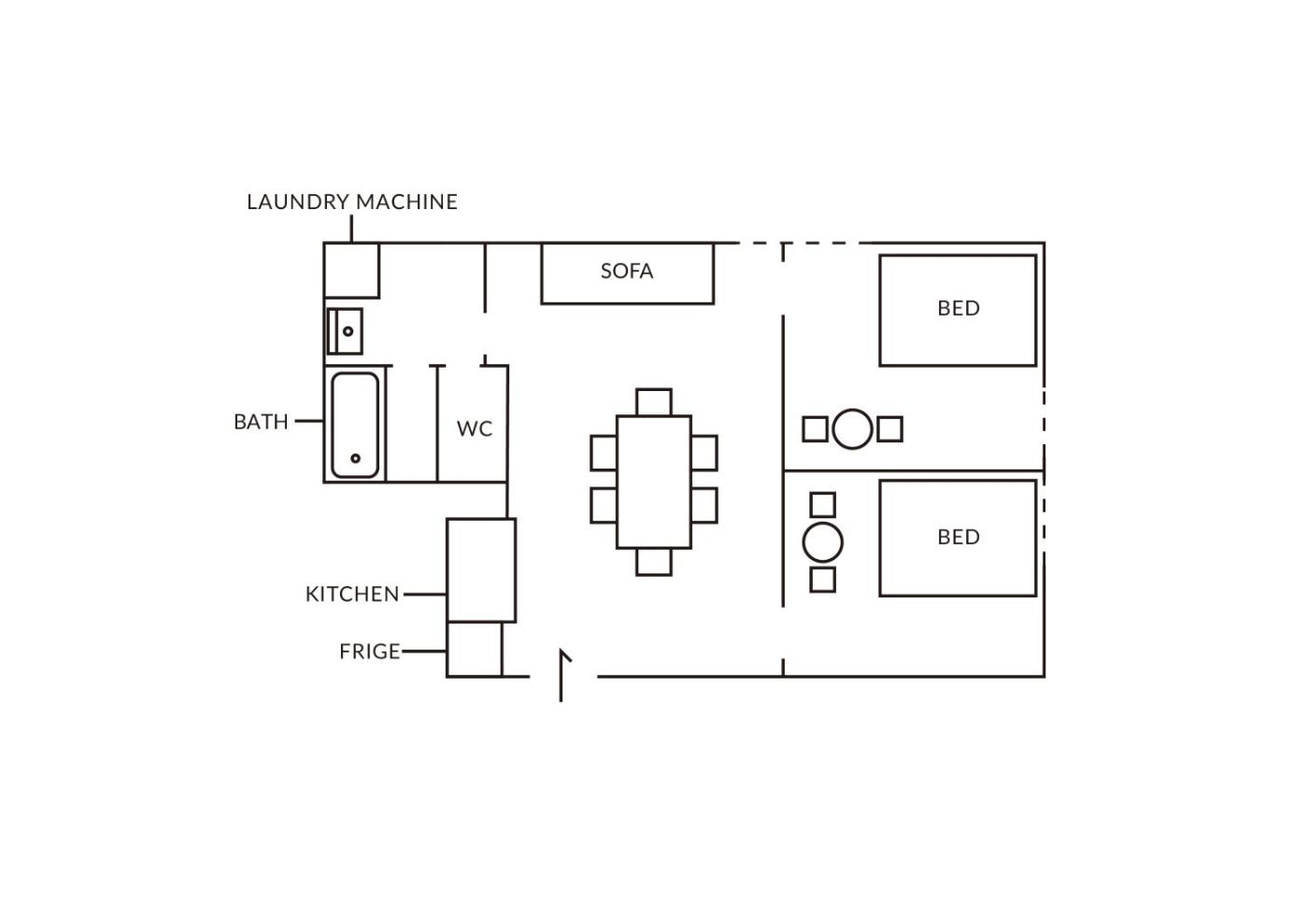 Two-Bedroom Apartment. In the kitchen, guests will find a stovetop, a refrigerator, kitchenware and a microwave. This apartment is air-conditioned and features a TV, a washing machine, a private entrance and a dining area. The unit offers 4 beds.