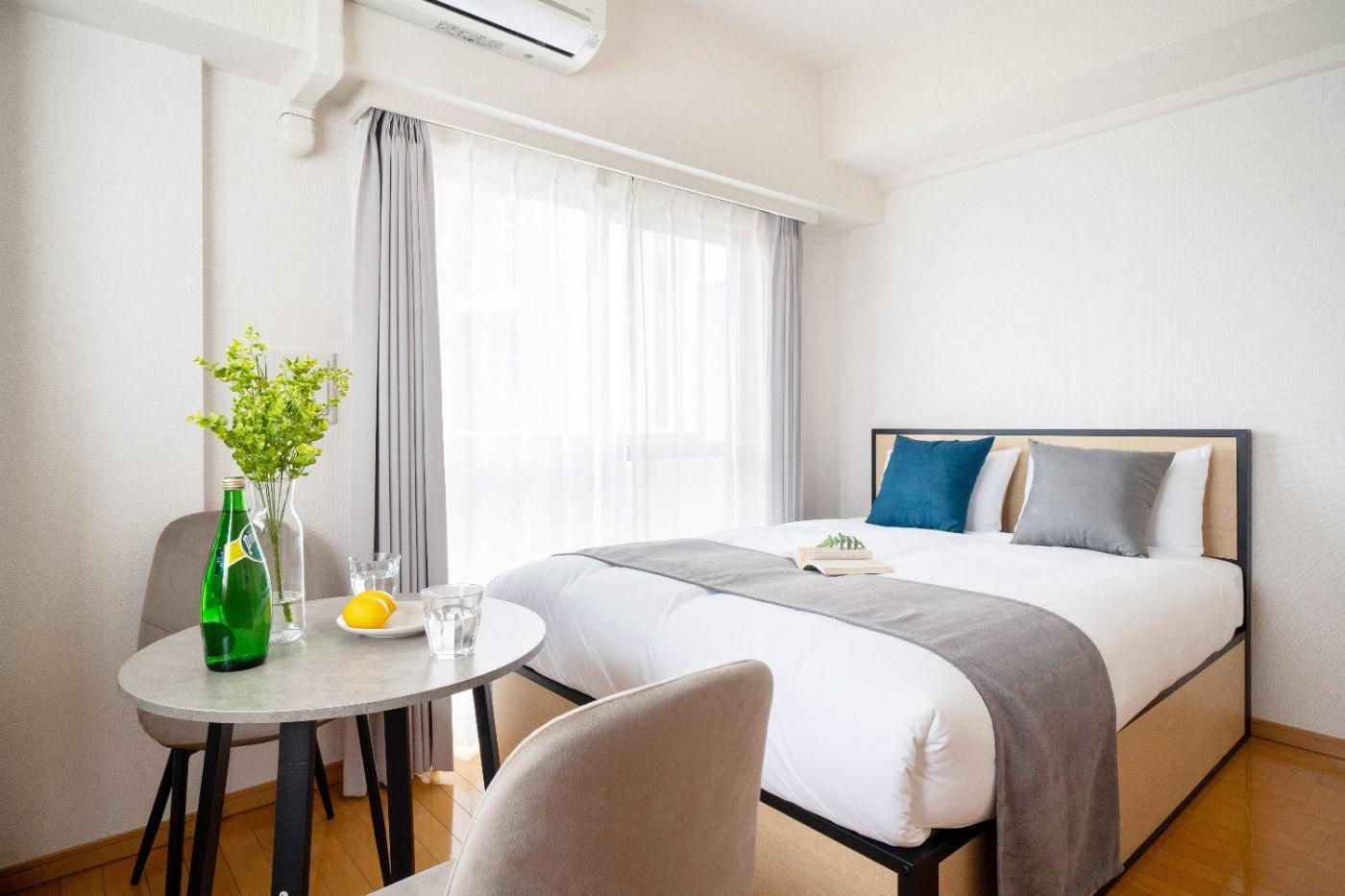 One-Bedroom Apartment. The air-conditioned apartment features 1 bedroom and 1 bathroom with a bath and a shower. Guests can make meals in the kitchen that is equipped with a stovetop, a refrigerator, kitchenware and a microwave. The apartment provides a washing machine, a wardrobe, an electric kettle along with a balcony. The unit offers 1 bed. ;