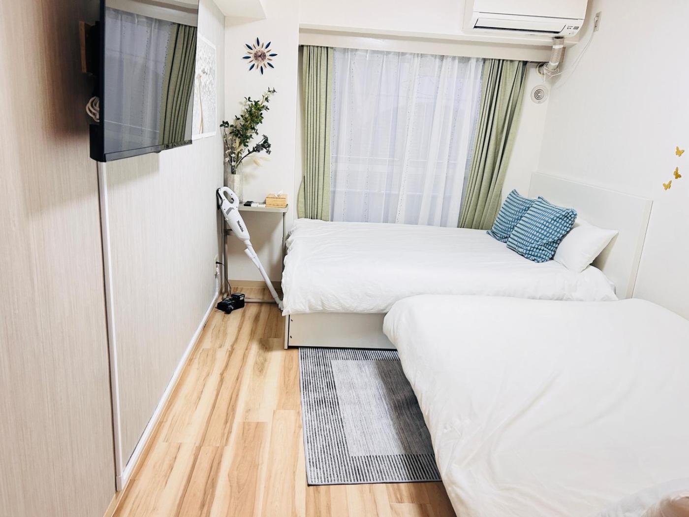 One-Bedroom Apartment. The air-conditioned apartment has 1 bedroom and 1 bathroom with a bath and a shower. In the well-fitted kitchen, guests will find a refrigerator, kitchenware, a microwave and an electric kettle. Boasting a balcony, this apartment also features a washing machine, tatami and a flat-screen TV. The unit has 2 beds.