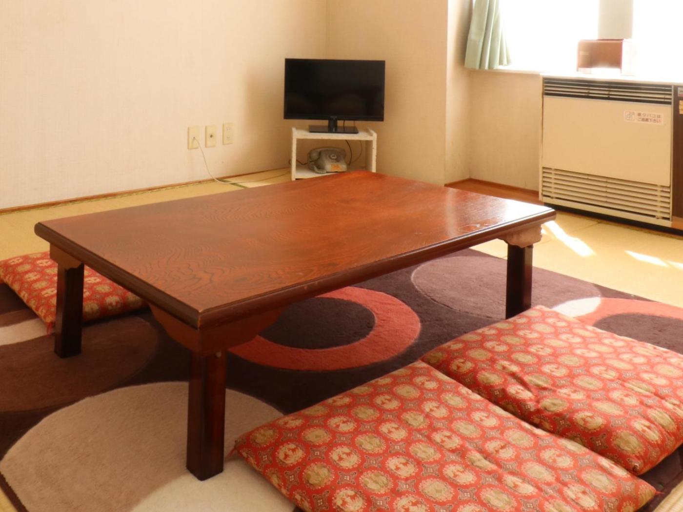 Japanese-Style Quadruple Room. Guests are allocated a room on arrival. Room types are subject to availability. Rooms are fitted with air conditioning and heating, and they have a Japanese-style seating area with a tatami (woven-straw) floor and a low table with seating cushions. They come with an LCD TV and either beds or traditional futon bedding. Toilets and bathing facilities are shared. ;